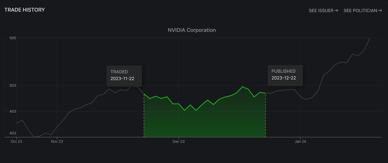 στη NVIDIA στις 22 Νοεμβρίου 2023. Ο πολιτικός καριέρας αποκάλυψε αυτό το εμπόριο στις 22 Δεκεμβρίου 2023.