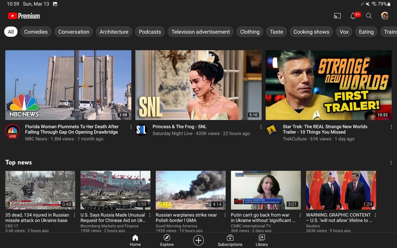 YouTube is fairly well-optimized for tablets with two-column views throughout, and Google’s I/O preview only showed the player screen. It could always switch to a navigation rail.