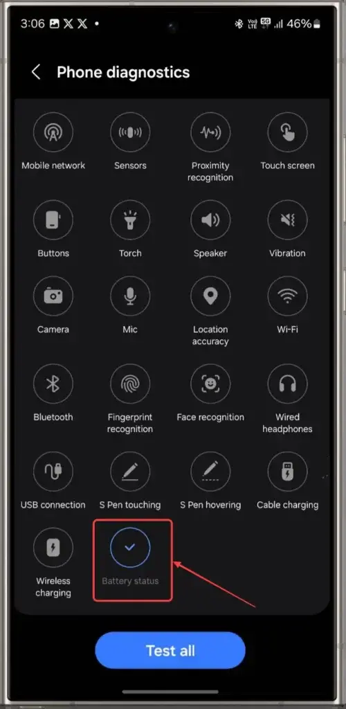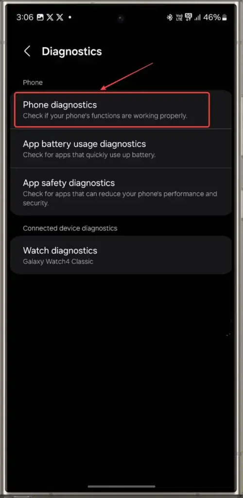 Επιλέξτε τη διαγνωστική επιλογή τηλεφώνου.
