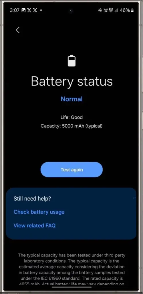 Ταυτόχρονα, η ξαφνική υποβάθμιση της ικανότητας της μπαταρίας υποδηλώνει σημαντικά ότι η συσκευή πλησιάζει στο τέλος της διάρκειας ζωής της. Ευτυχώς, η Samsung παρέχει τη δυνατότητα να ελέγχει την υγεία της μπαταρίας των συσκευών Galaxy της, προκειμένου να διασφαλίσει ότι η μπαταρία της συσκευής λειτουργεί ομαλά ή όχι.