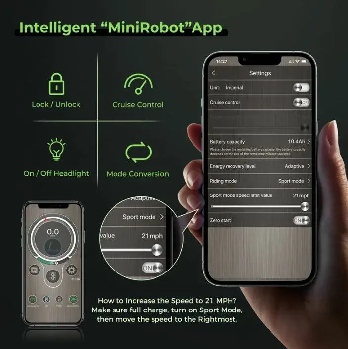 Το Isinwheel S9 Max είναι εξοπλισμένο με δισκόπλακες στο μπροστινό και πίσω τροχό, εξασφαλίζοντας ακόμη μεγαλύτερη ασφάλεια και ελέγχου κατά το φρενάρισμα. Με αναδιπλούμενες διαστάσεις 45x