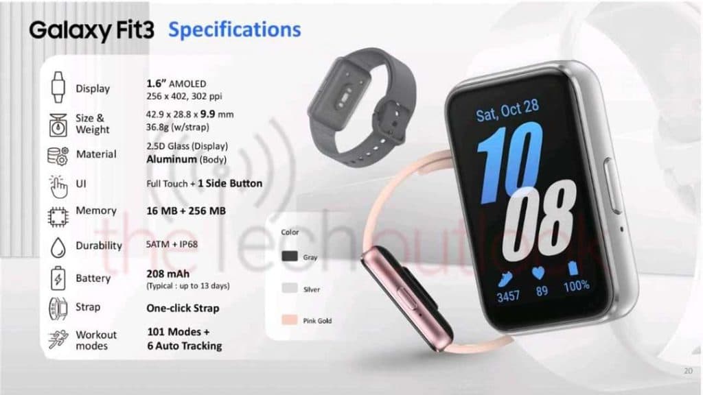 ). Με αυτό, το φύλλο προδιαγραφών δείχνει επίσης ότι το Galaxy Fit 3 θα φιλοξενεί 16MB RAM και 256MB εσωτερική αποθήκευση.