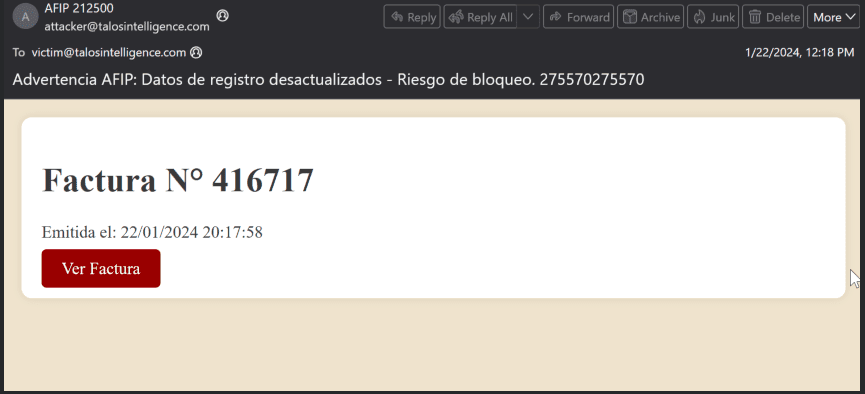 Οι επιθέσεις ξεκινούν με μηνύματα ηλεκτρονικού ψαρέματος (phishing) προς πιθανά θύματα, τα οποία έχουν σχεδιαστεί για να εμφανίζονται ως νόμιμες επικοινωνίες για τιμολόγια, οικονομικές καταστάσεις ή μηνύματα από την τοπική κυβέρνηση και τις φορολογικές υπηρεσίες.