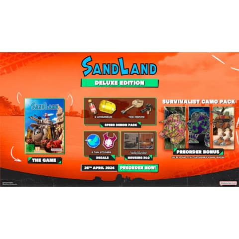 Η έκδοση Sand Land Standard περιλαμβάνει το βασικό παιχνίδι και το Survivalist Camo Pack DLC, εάν το αγοράσετε πριν από τις 26 Απριλίου. Είναι διαθέσιμο για 60 $ σε PC, PS5, PS4 και Xbox Series X|S. Οι φυσικές προπαραγγελίες είναι διαθέσιμες στη διεύθυνση