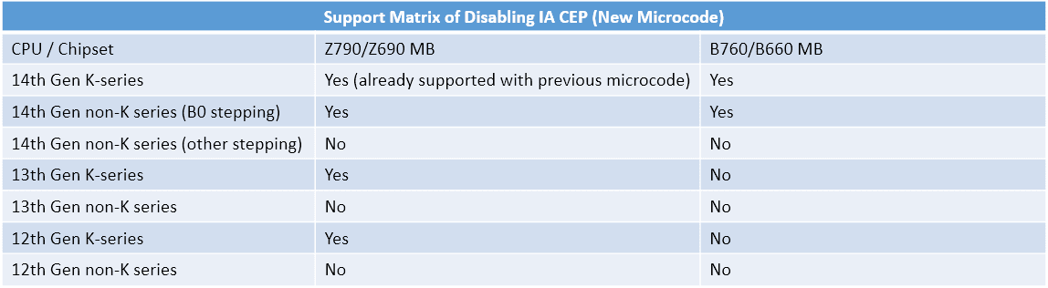 Ακολουθεί η λίστα υποστήριξης των εν λόγω δυνατοτήτων για κάθε SKU CPU Intel 600/700: