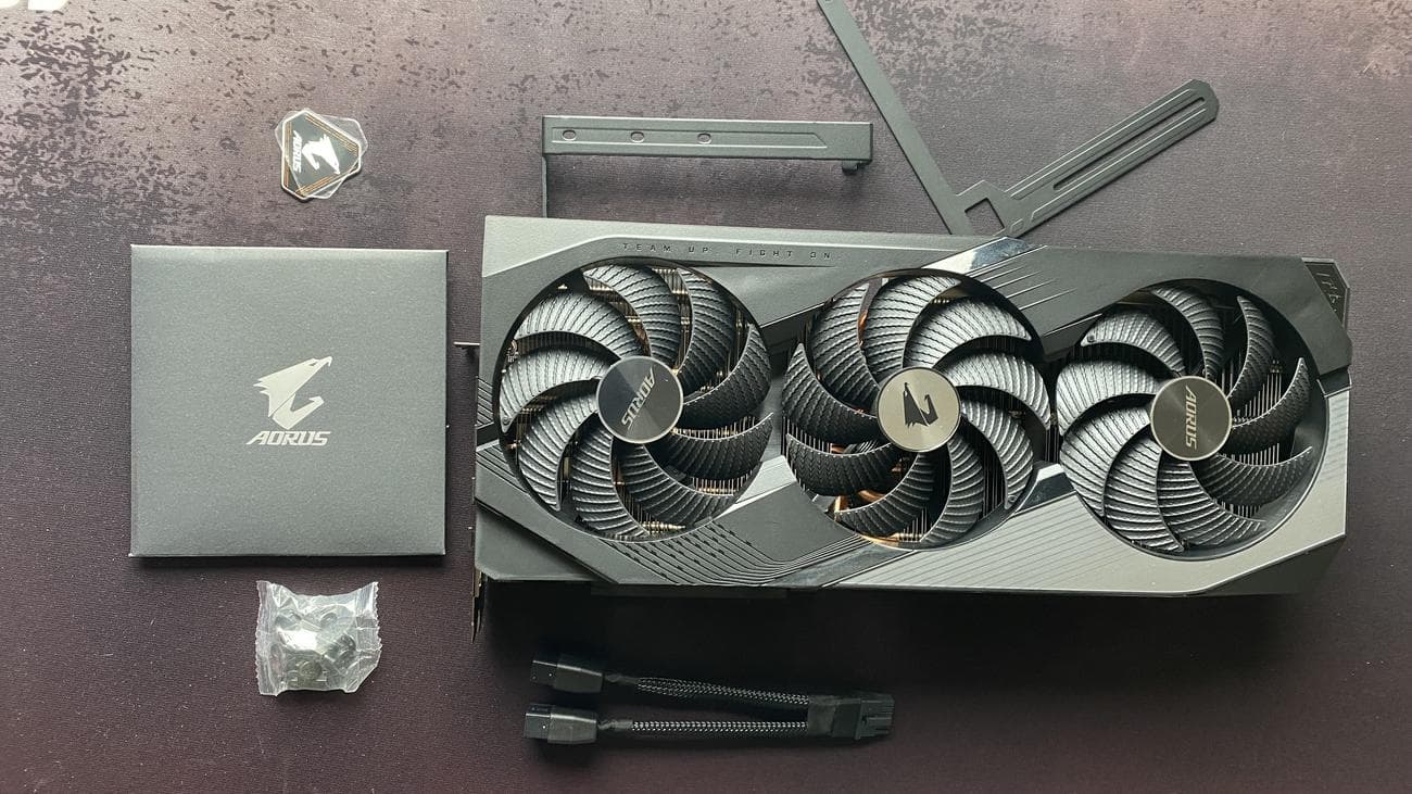 και αυξημένη πίεση αέρα και έχουν αυλάκωση στα πτερύγια τους εμπνευσμένη από το δέρμα του καρχαρία, όπως μας ενημερώνει η Gigabyte, για να ενισχύεται η ροή του αέρα. Από πλευράς φωτισμού RGB, τα πράγματα είναι πληθωρικά. Τα λογότυπα AORUS στην πίσω πλάκα και στο πλάι φωτίζονται με RGB εφέ. Επίσης οι τρεις ανεμιστήρες της κάρτας έχουν δαχτυλίδια LED κατά μήκος των πλαισίων τους, τα οποία προσφέρουν εντυπωσιακά πολύχρωμα εφέ φωτισμού.