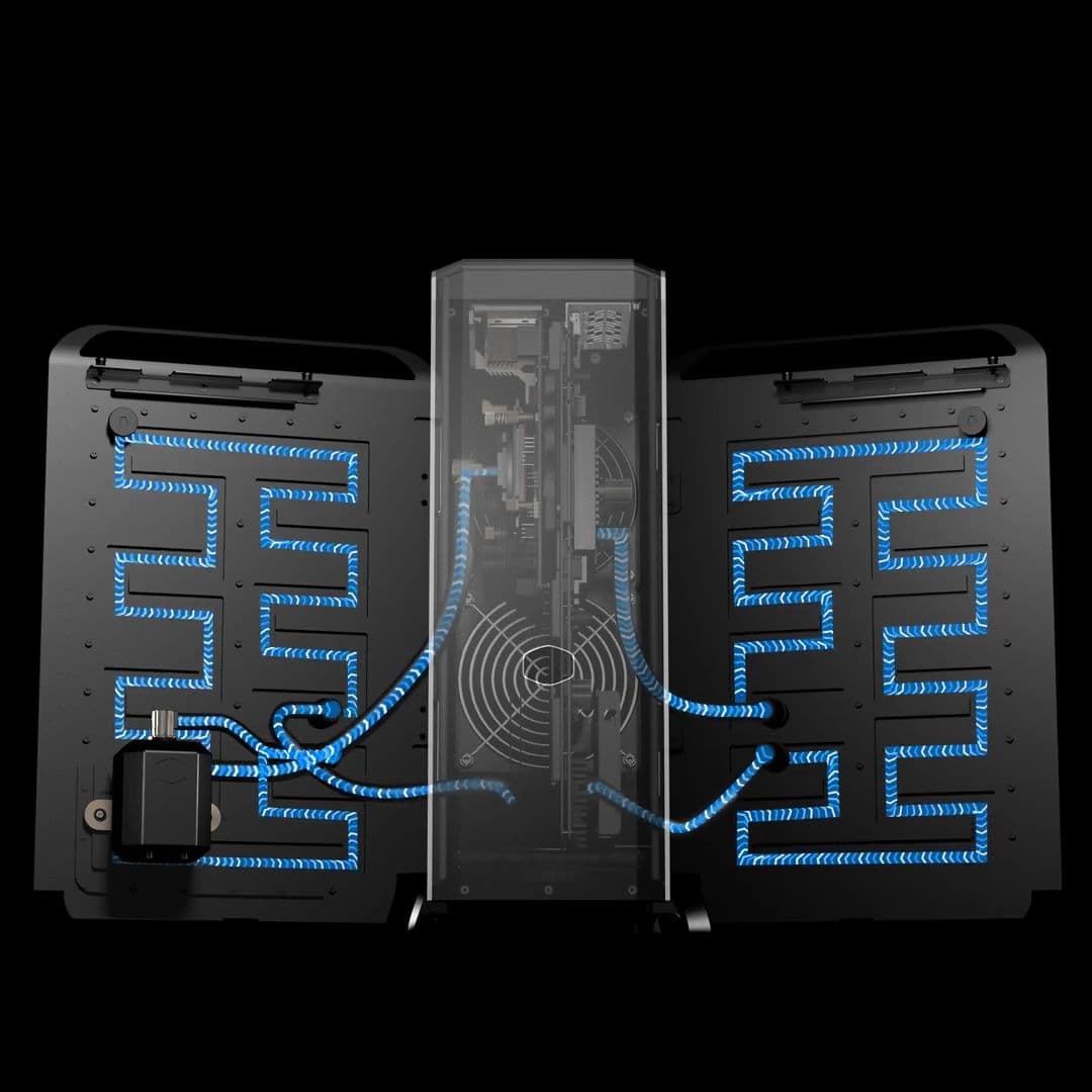 Το Cooler Master’s Cooling X είναι ένα από τα μοναδικά προκατασκευασμένα συστήματα χωρίς ανεμιστήρα που μπορείτε να αγοράσετε στην αγορά, σχεδιασμένο για κορυφαία απόδοση ενώ λειτουργεί αθόρυβα. Ο σχεδιασμός του χρησιμοποιεί ολόκληρο το πλαίσιο του υπολογιστή ως μια γιγαντιαία ψύκτρα για την αποτελεσματική ψύξη της CPU AMD Ryzen 7950X3D και της κάρτας γραφικών Nvidia RTX 4080.