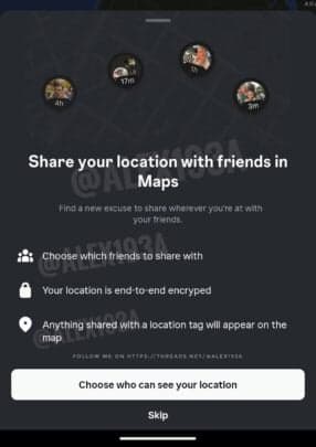 ”), και ενημερώστε τους χρήστες ότι η κοινή χρήση τοποθεσίας είναι κρυπτογραφημένη από άκρο σε άκρο και οτιδήποτε μοιράζεστε με μια ετικέτα τοποθεσίας θα εμφανίζεται στον χάρτη. Επιπλέον, λέει «