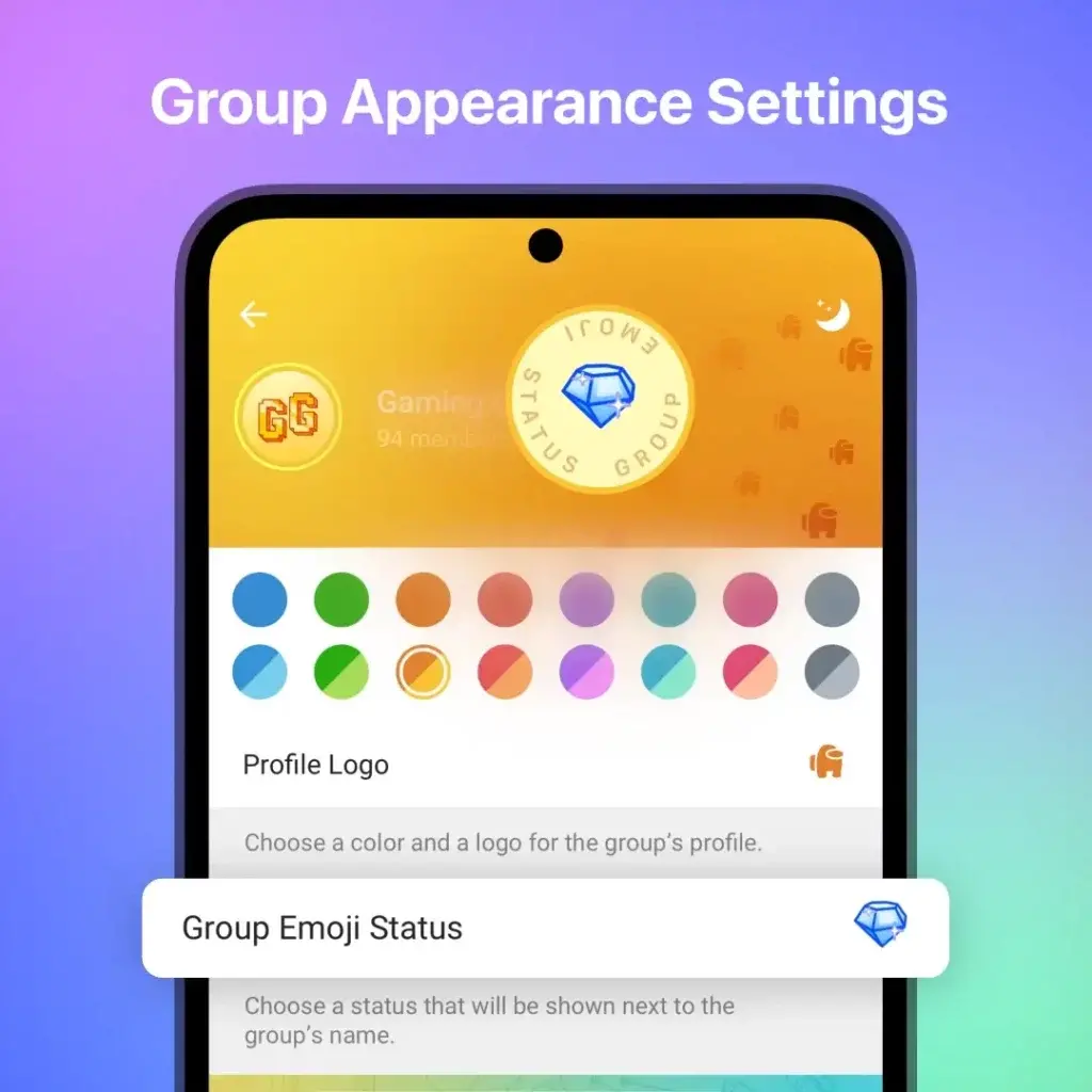 Οι ομάδες με υψηλότερες ενισχύσεις μπορούν πλέον να έχουν μερικές μοναδικές επιλογές προσαρμογής, τις οποίες θα βρείτε μόνο στο Telegram. Μέσω της νέας δυνατότητας Group Appearance, θα μπορείτε πλέον να αλλάξετε το χρώμα και το λογότυπο του εξωφύλλου του προφίλ της ομάδας σας, να επιλέξετε μια ταπετσαρία της επιλογής σας και να ορίσετε μια κατάσταση emoji, αντίστοιχα. Όλες αυτές οι αλλαγές θα είναι ορατές σε κάθε άτομο στην ομάδα και σε όσους ανοίγουν την ομάδα σας.