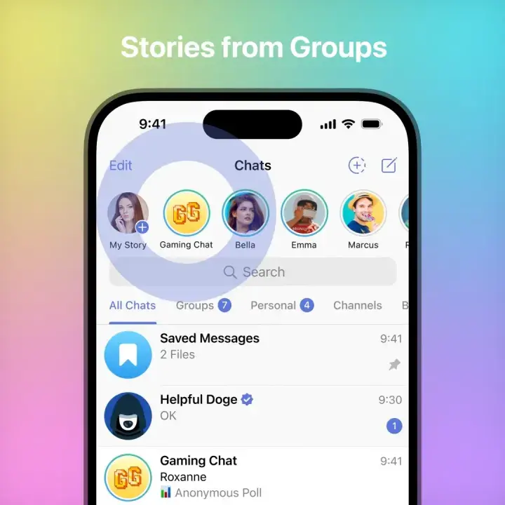 Μέσω αυτής της νέας δυνατότητας, στις ομαδικές συνομιλίες, οι διαχειριστές της ομάδας μπορούν πλέον να δημοσιεύουν ιστορίες. Αυτή η ενημέρωση προσφέρει έναν νέο τρόπο επικοινωνίας σε
