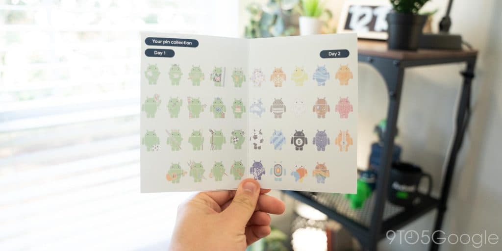 Στο περίπτερο του Android, οι παρευρισκόμενοι μπορούν να πάρουν τον οδηγό τους για την εμπειρία, ο οποίος περιλαμβάνει το κυνήγι των pins Android σε όλο τον όροφο της έκθεσης. Φέτος, 19 περίπτερα στα Fira de Barcelona έδιναν pins Android. Την πρώτη μέρα, υπάρχουν 19 καρφίτσες για συλλογή, καθεμία από