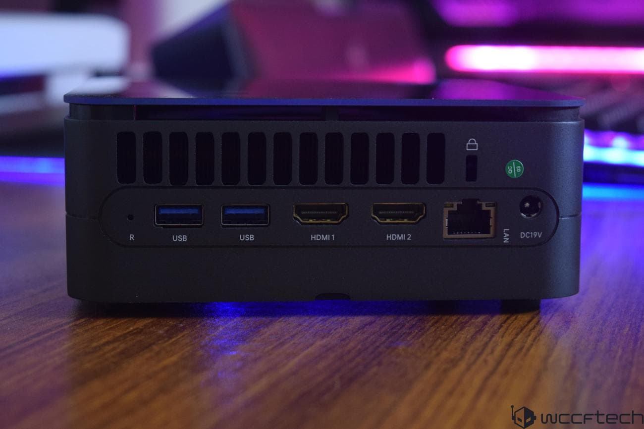 The back I/O of the ACEPC WizBox AI F1M Mini PC comes with a 2.5GbE Ethernet LAN port, two HDMI 2.0b outputs, 2 USB 3 Type-A ports, and the DC-in power delivery port.