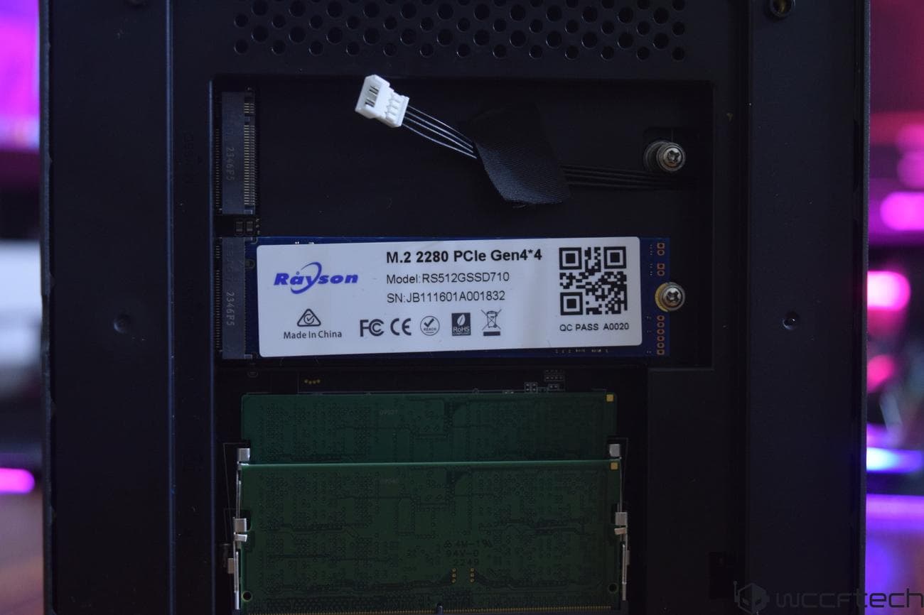 For SSD, ACEPC uses a Rayson RS512GSSD710 PCIe Gen4 storage device which comes in the standard M.2 2280 form factor and operates at a speed of 5500 MB/s (Read). This and the 2nd SSD slot can be populated with up to 4 TB capacities (each) and the fastest 7 GB/s+ speeds that you can get right now.