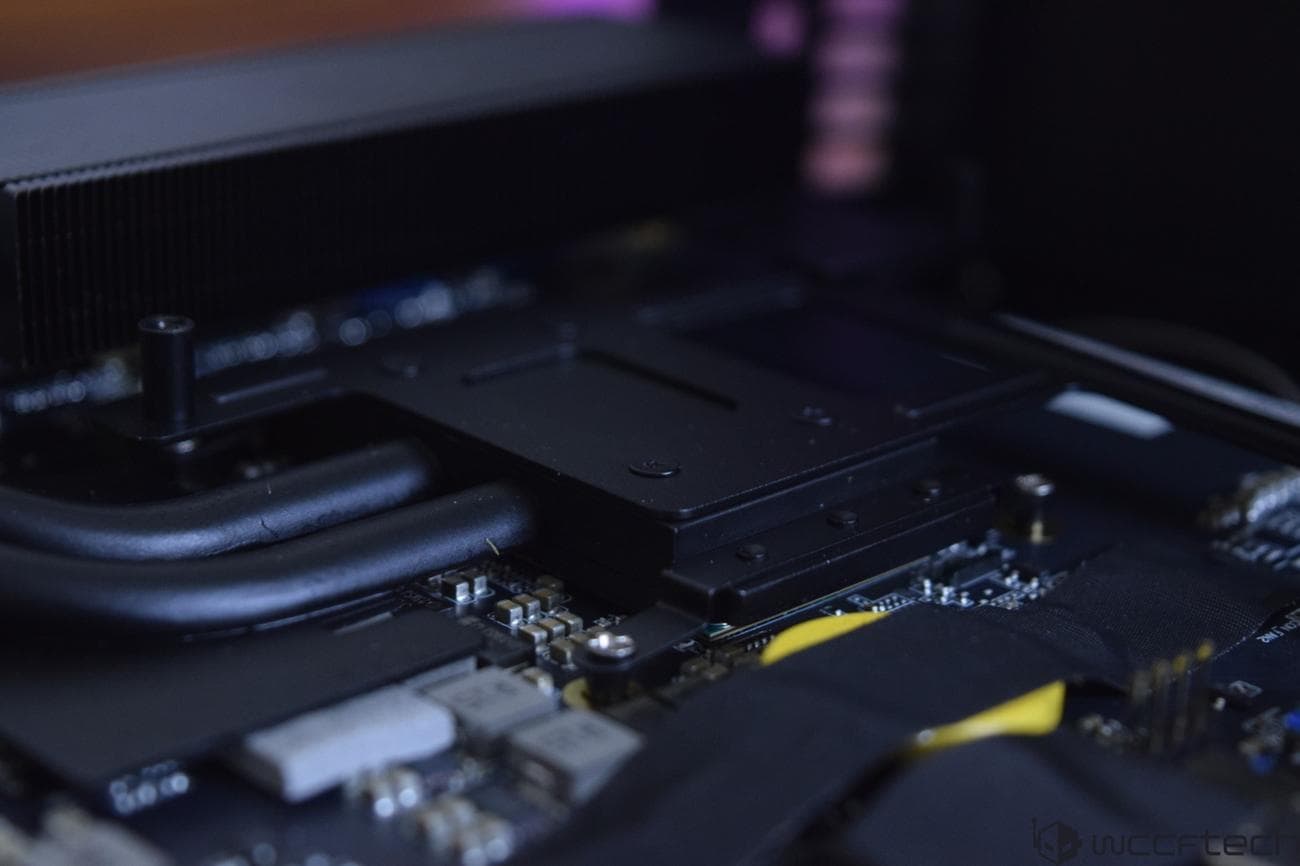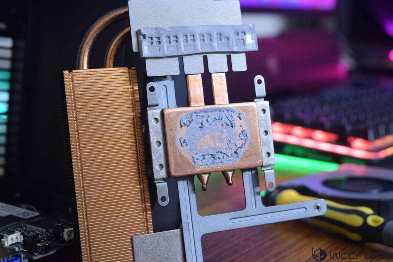 The whole heatsink assembly is super-premium in the fact that it uses copper. The CPU uses the standard TIM application while there are thermal pads attached for the VRMs.