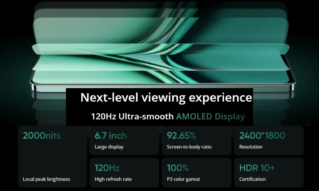 Το Realme 70 Pro 5G έρχεται με FHD+ OLED 6,67 ιντσών για οθόνη, ρυθμό ανανέωσης 120 Hz, ρυθμό δειγματοληψίας αφής 2200 Hz, μέγιστη φωτεινότητα 2000 nits κ.λπ., η οποία μπορεί να χρησιμοποιηθεί εύκολα στο φως του ήλιου και σε χαμηλό φωτισμό. Η ποιότητα αφής είναι τόσο ομαλή που μπορείτε να απολαύσετε τα παιχνίδια και άλλα πράγματα εύκολα.