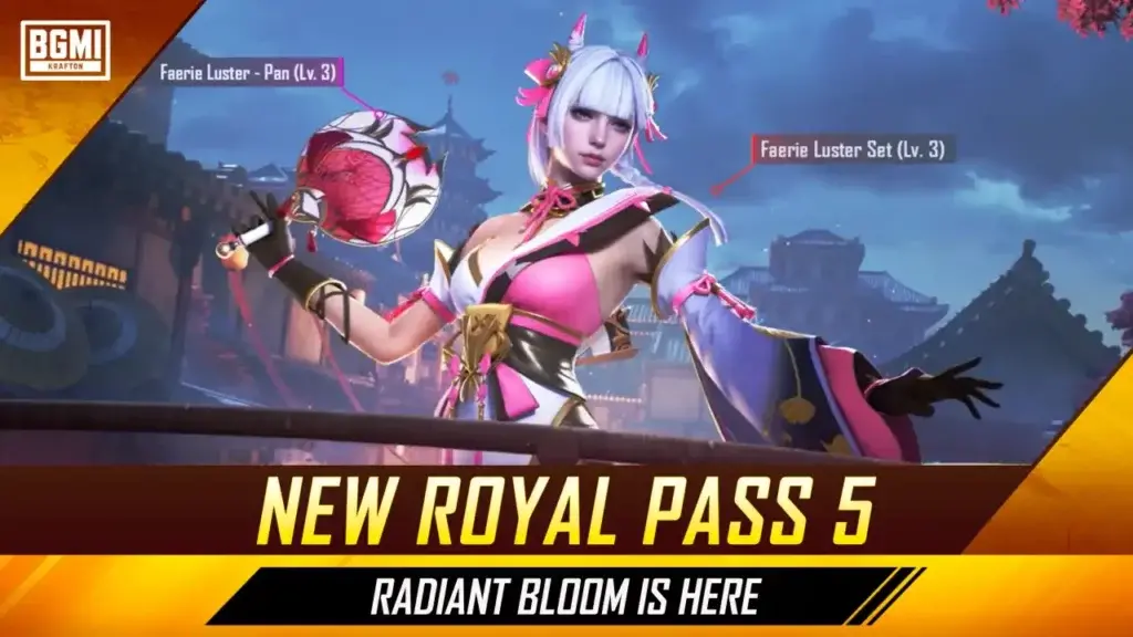 Τώρα μπορείτε να διπλασιάσετε τις ανταμοιβές σας και να λάβετε μερικά συναρπαστικά αλλά αποκλειστικά Royal Passes με το πρόσφατα προστεθέν Royal Pass A5, Radiant Bloom. Αυτό σας επιτρέπει να έχετε την ευκαιρία να επιδεικνύετε τις ανταμοιβές σας στο πεδίο της μάχης με το νέο εξαιρετικό RPA 5.