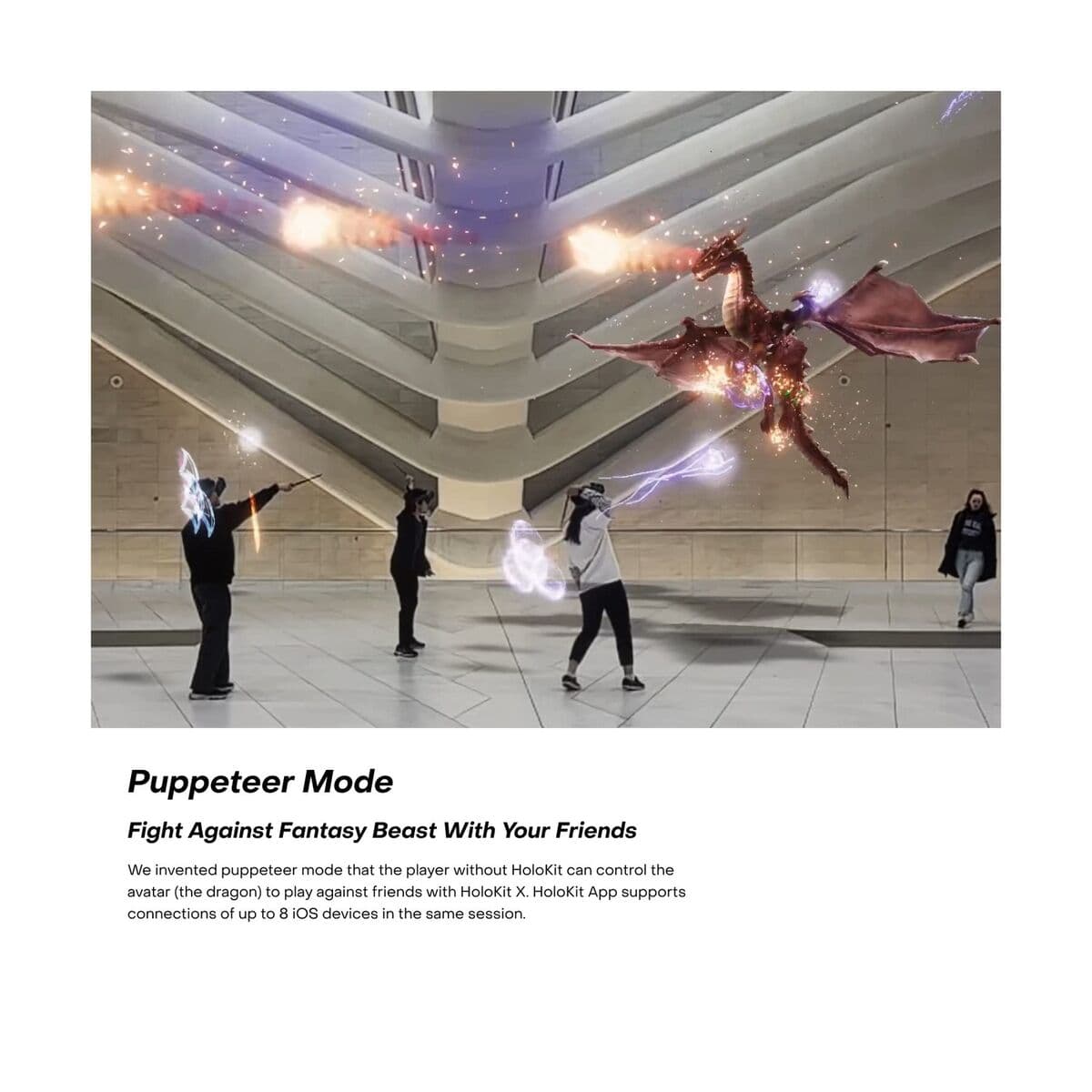 Τα παιχνίδια και οι εμπειρίες HoloKit AR διαθέτουν λειτουργίες για πολλούς παίκτες. Κάθε άτομο μπορεί να παίξει διαφορετικούς ρόλους, οι οποίοι ποικίλλουν με κάθε παιχνίδι. Σε ένα, μπορώ να είμαι φάντασμα, παρατηρητής, επιθετικός ή θεατής.