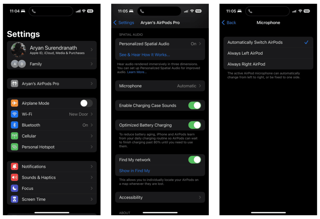 - Ανοίξτε τις Ρυθμίσεις και πατήστε στα AirPods σας ακριβώς κάτω από το όνομα Apple ID σας.