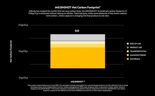 Στο Global Fashion Summit στην Κοπεγχάγη, η φίρμα Allbirds παρουσίασε το Moonshot, ένα αθλητικό υπόδημα με βιοπλαστική σόλα σε στυλ μάλλινης κάλτσας, υποστηρίζοντας ότι στη διάρκεια της ζωής του εκπέμπει μηδενικές ποσότητες άνθρακα στην ατμόσφαιρα.