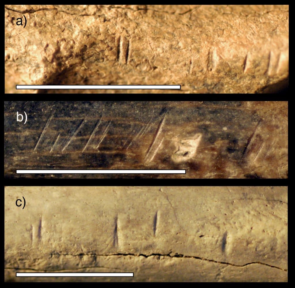 Η ανάλυση έδειξε ότι 9 από τις 99 χαρακιές είναι πράγματι ίχνη κοπής, αναφέρει η Μπομπάινερ και οι συνεργάτες της στο