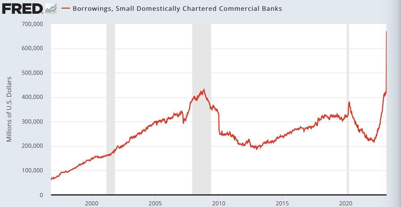 Αποτέλεσμα; Να χρειαστούν χρηματοδότηση και παρέμβαση από την κεντρική τράπεζα, ειδικά οι μικρότερες τράπεζες. Το παρακάτω διάγραμμα είναι τρομακτικά αποκαλυπτικό! Τα ποσά που απαιτήθηκαν από τις μικρότερες εμπορικές τράπεζες