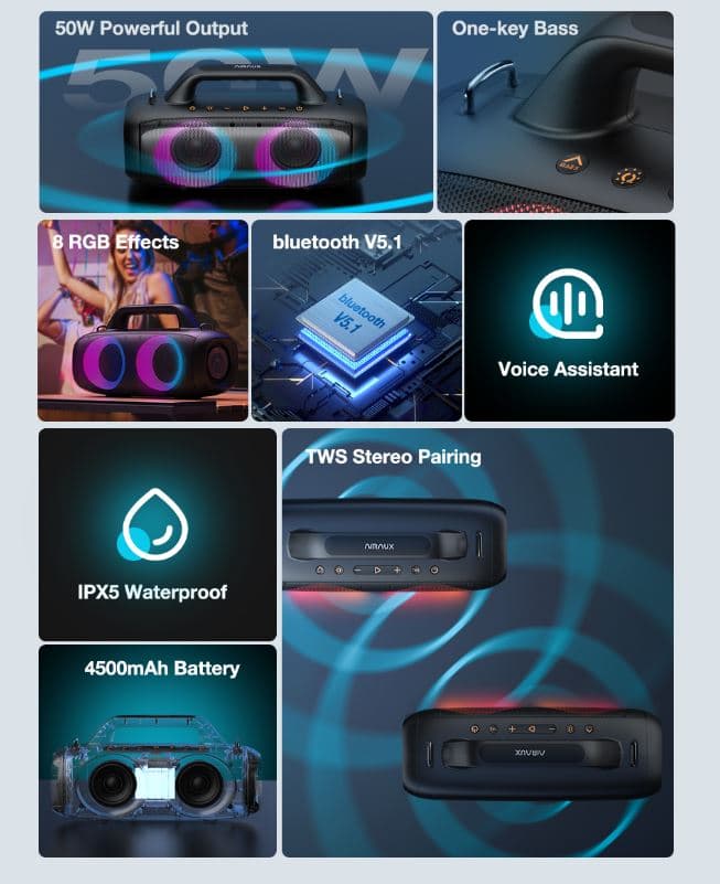 Πρόσθεσε μια ειδοποίηση για AirAux AA-DH1 50W TWS bluetooth V5.1 Speaker – €42,20