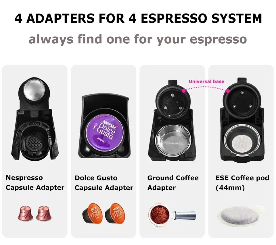 Το μεγάλο της όπλο, είναι η συμβατότητα…με τα πάντα. Δε χρειάζεται να διαλέξετε ανάμεσα σε Nespresso, Dolce Gusto ή ESE Pods, ούτε χρειάζεται να αφήσετε απ’εξω τον χύμα καφέ.
