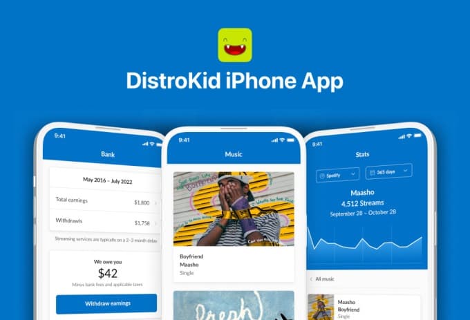 , initially only for iPhone. The new app lets artists upload new releases, receive instant payment alerts, access stats from Apple and Spotify, edit metadata and more from their phones. The company said the mobile app had been the number one request from DistroKid members.