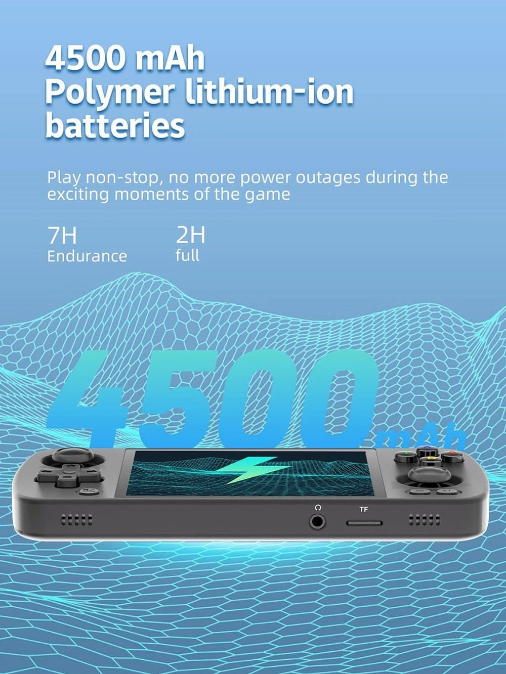 Η μπαταρία του RG405M έχει χωρητικότητα 4500mAh και αντέχει 7 ώρες παιχνιδιού, (κάντε το 5 να είστε μέσα) με μια φόρτιση να διαρκεί 2 ώρες, μέσω μιας USB-C θύρας.