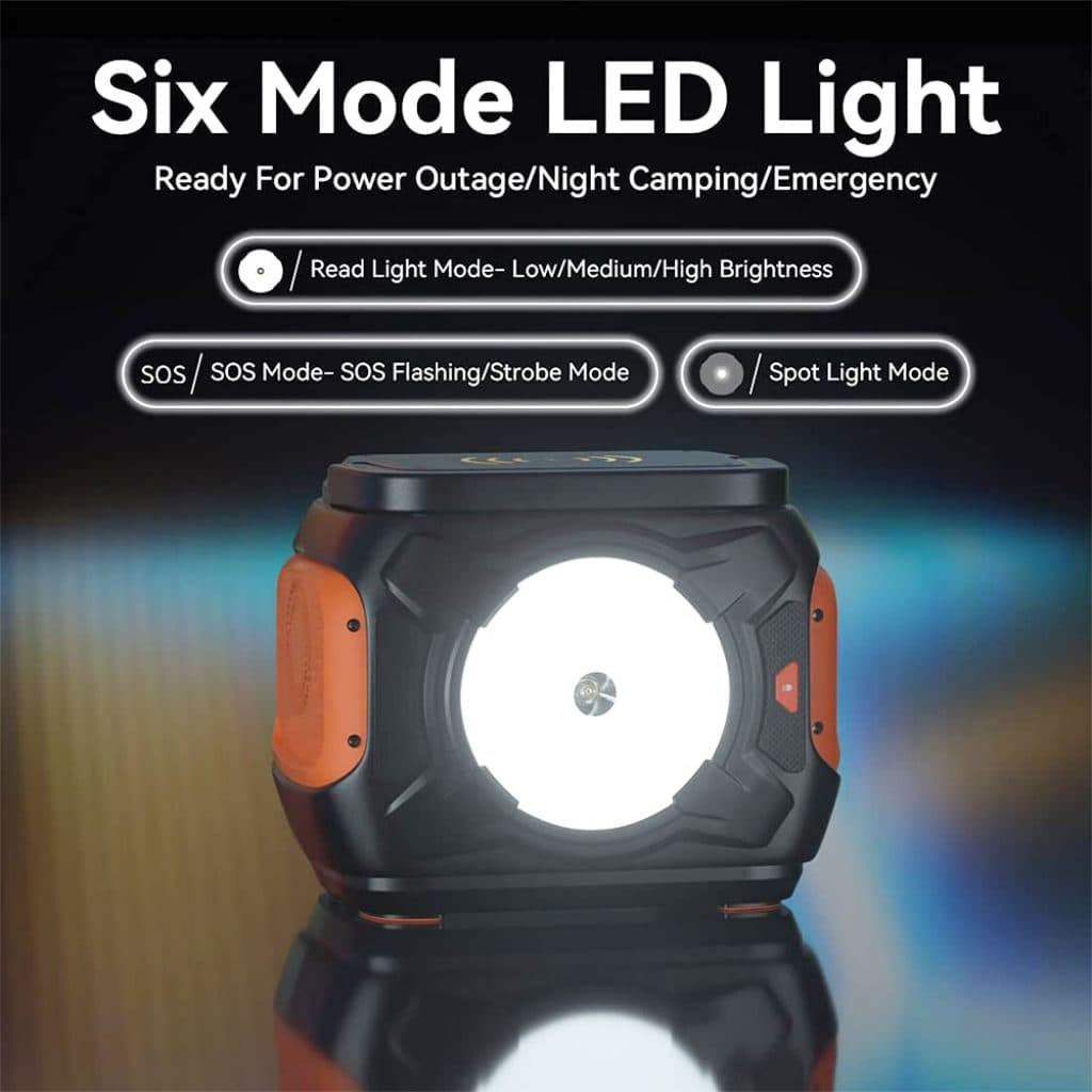 Φορτίζει μέσω πρίζας τοίχου + USB-PD με 3.5 ώρες, ή μέσω αναπτήρα αυτοκινήτου/ Ηλιακού Panel. Έχει και έναν τεράστιο φακό στην πλάτη.