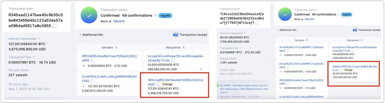 , στην πραγματικότητα δεν υπάρχει λόγος ανησυχίας. Τα Bitcoin στάλθηκαν σε δύο πρόσφατα δημιουργημένες διευθύνσεις, οι οποίες ανήκουν στην Binance. Μάλιστα