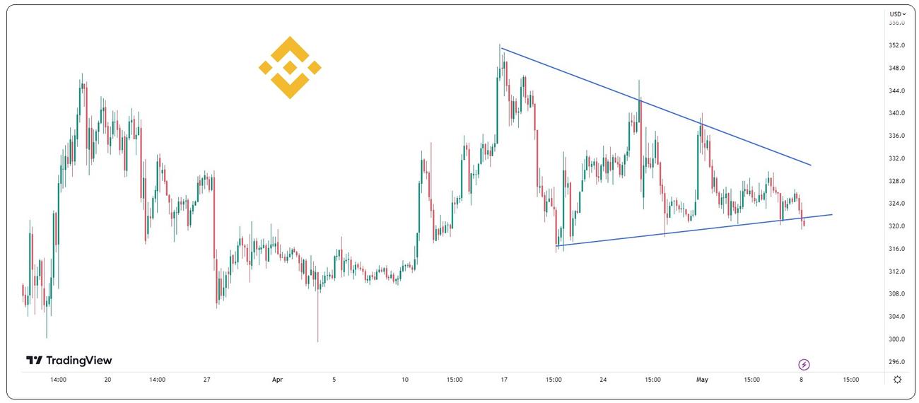 δηλαδή οντότητες που κατέχουν μεγάλο αριθμό Bitcoin, επιβεβαιώνεται και από το νόμισμα της Binance, το BNB. Μπορεί τεχνικά το 4ωρο διάγραμμα να μην δείχνει ιδιαίτερα ευοίωνο, καθώς διέσπασε προς τα κάτω τον τριγωνικό σχηματισμό συσσώρευσης, όμως