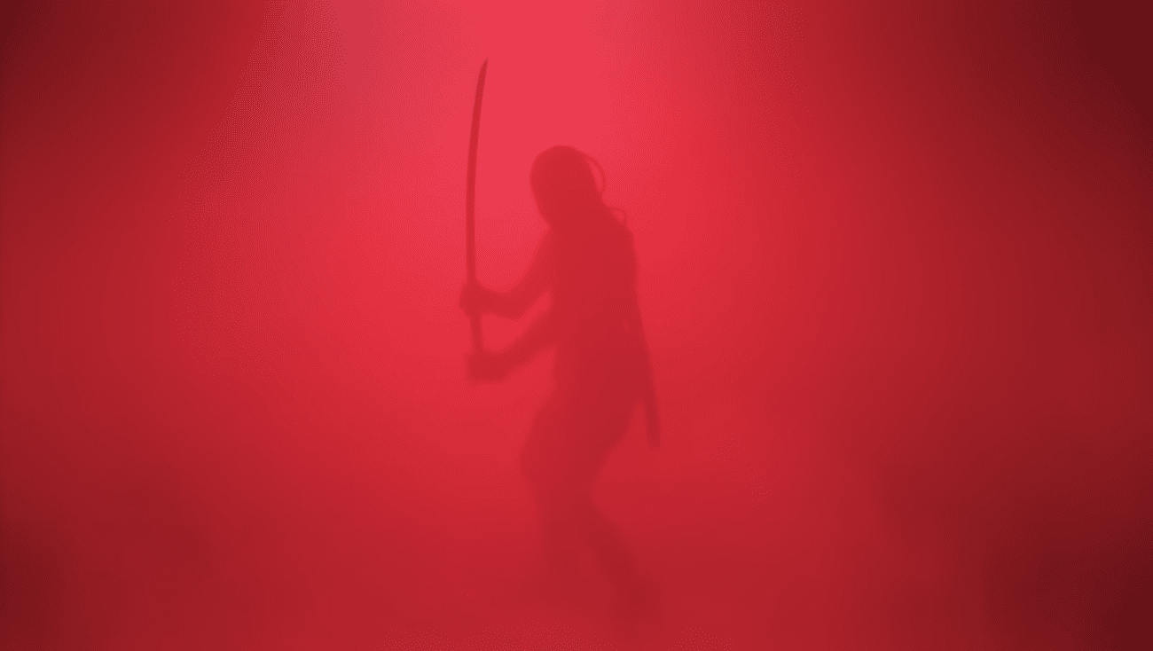 σε ένα βαθύ κόκκινο σκηνικό με το κατάνα της υψωμένο όπου ακούγεται να λέει: ‘Ήμουν εκεί έξω για πολύ καιρό. Έχασα κάποιον πριν από χρόνια. Και μετά τα πράγματα άλλαξαν. Και ανακάλυψα ότι είναι ζωντανός”. Σε εκείνο το σημείο το trailer κόβει με σκηνές του Rick του