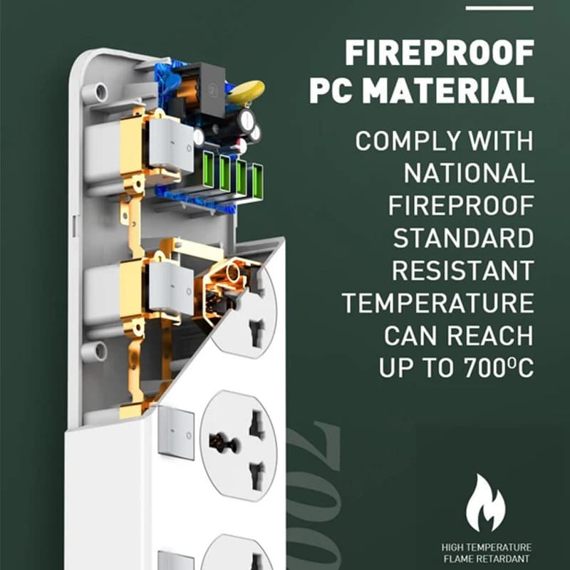 Στο πλάι του έχει και ένα κουμπί/ασφάλεια υπερφόρτωσης και είναι κατασκευασμένο απο πυρίμαχο πλαστικό που αντέχει μέχρι και 700 βαθμούς κελσίου.