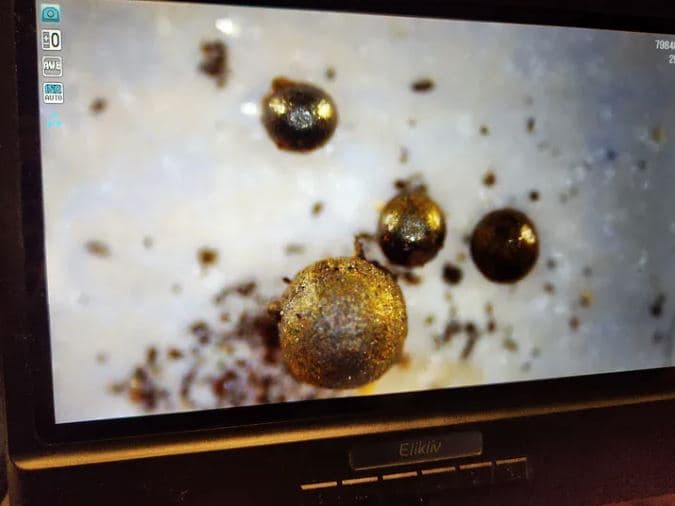 ότι συνέλεξε εκατοντάδες μεταλλικά σφαιρίδια, με διάμετρο κάτω του ενός χιλιοστού, ορισμένα από τα οποία εστάλησαν για ανάλυση σε εργαστήριο. Προκαταρκτικά δεδομένα που επικαλείται ο ερευνητής δείχνουν ότι από τα σφαιρίδια απουσιάζει το νικέλιο, στοιχείο που ανιχνεύεται σε όλους τους μεταλλικούς μετεωρίτες.