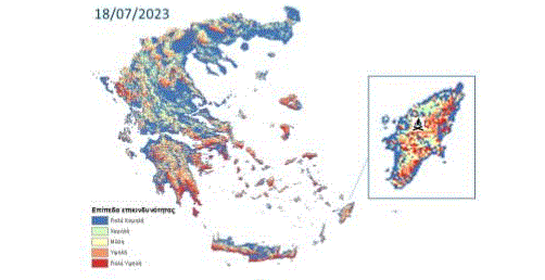 H πλατφόρμα 𝗙𝗼𝗿𝗲𝘀𝘁 𝗙𝗶𝗿𝗲 𝗜𝗻f𝗼𝗿𝗺𝗮𝘁𝗶𝗼𝗻 𝗦𝘆𝘀𝘁𝗲𝗺 (𝗙𝗙𝗜𝗦) της Επιχειρησιακής Μονάδας BEYOND του ΙΑΑΔΕΤ/ΕΑA κατέγραψε την εξέλιξη των ενεργών εστιών στη Ρόδο (Εικόνα 6), για το διάστημα 18/07/2023 – 25/7/2023 ύστερα από επεξεργασία δορυφορικών εικόνων μέσης ανάλυσης. Στο βίντεο που επισυνάπτεται φαίνεται η χωροχρονική εξάπλωσή τους.