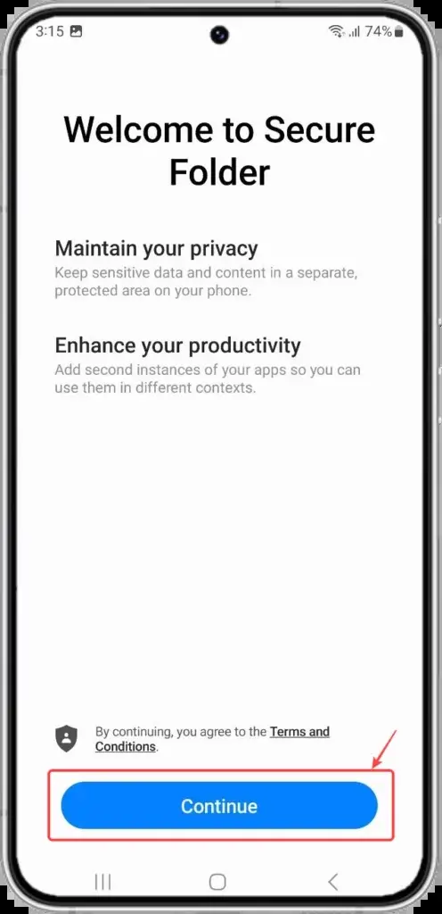 - Πατήστε Συνέχεια και συνδεθείτε στον λογαριασμό σας Samsung εάν δεν το έχετε κάνει.