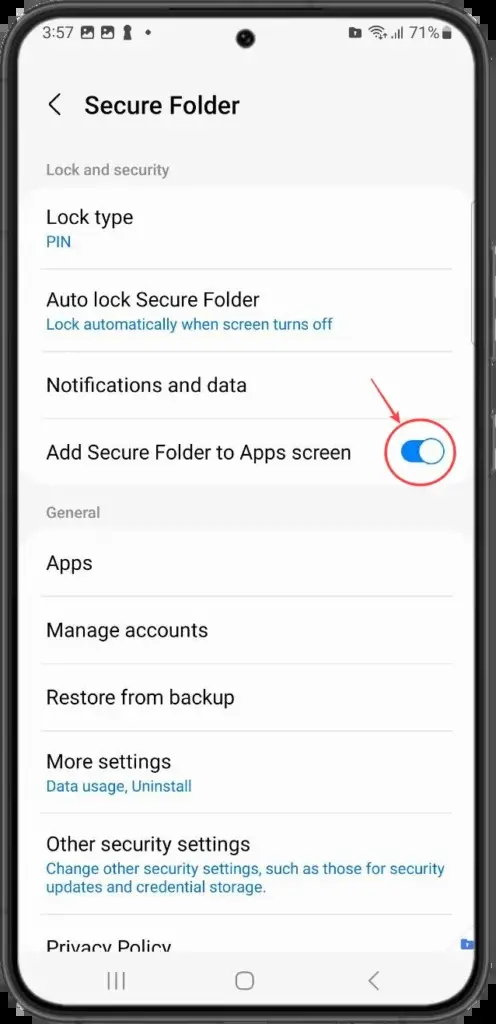 - Πατήστε την επιλογή Προσθήκη ασφαλούς φακέλου στην οθόνη της εφαρμογής για να την ενεργοποιήσετε.