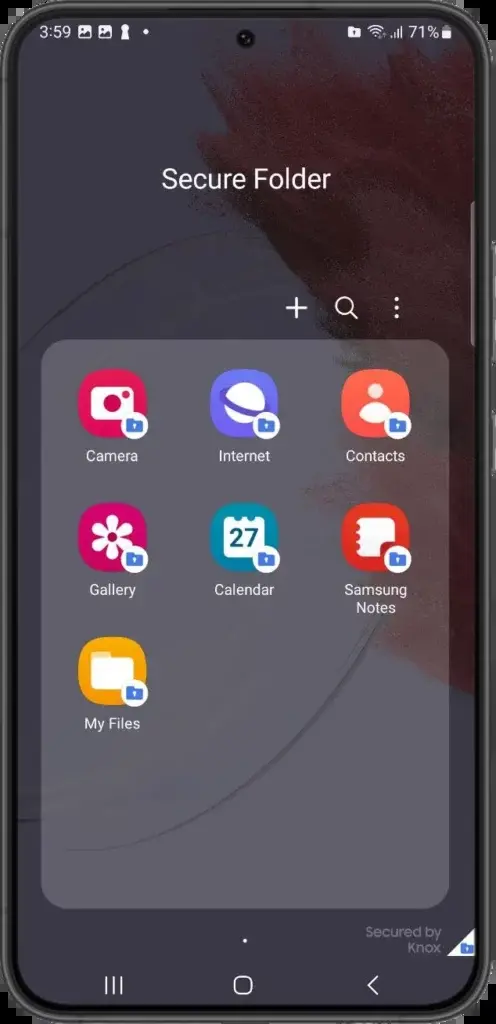 Το Samsung Secure Folder είναι μια δυνατότητα διαθέσιμη στα smartphone Galaxy που παρέχει έναν ασφαλή και ιδιωτικό χώρο για την αποθήκευση ευαίσθητων δεδομένων, αρχείων, φωτογραφιών, βίντεο και εφαρμογών. Προσφέρει ένα επιπλέον επίπεδο προστασίας μέσω της ασφάλειας Samsung Knox, διασφαλίζοντας κρυπτογράφηση δεδομένων και προστασία από μη εξουσιοδοτημένη πρόσβαση.