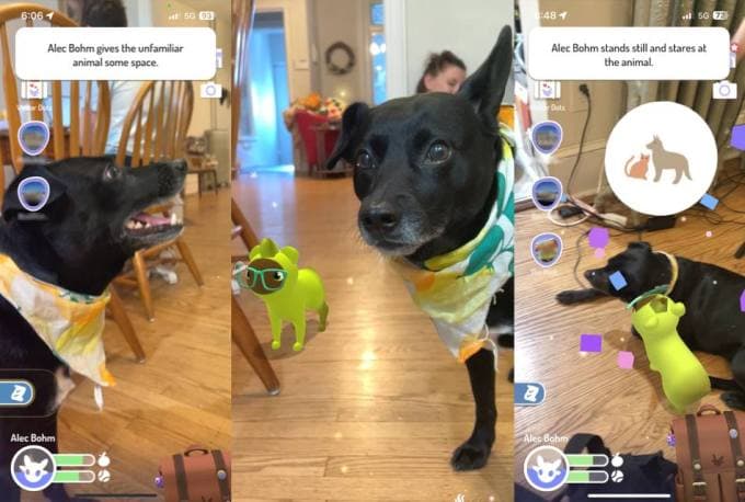 Ακόμα κι αν το Peridot μου μπορεί να αναγνωρίσει ζώα του πραγματικού κόσμου, υπάρχουν μερικά κωμικά ανόητα μειονεκτήματα στην τεχνολογία του παιχνιδιού. Μερικές φορές, το Peridot σας μπορεί να θέλει να ψάξει για τροφή στο γρασίδι, την άμμο ή το νερό και το παιχνίδι χρησιμοποιεί τεχνητή νοημοσύνη για να προσδιορίσει το έδαφος που βλέπει. Εάν δεν βρίσκεστε δίπλα σε νερό, ορισμένοι δοκιμαστές beta έχουν βρει ότι μπορείτε απλώς να δείξετε στο Peridot σας ένα μπουκάλι μπλε στοματικό διάλυμα ή μια φωτογραφία με νερό για να ξεγελάσετε το παιχνίδι. Έχω μια ταπισερί ενός δάσους, την οποία το παιχνίδι καταγράφει ως χορτώδη βιότοπο — θα κάνει και ένα φυτό σπιτιού. Θυμίζει τις πρώτες μέρες του Pokémon GO, όταν οι άνθρωποι έβαζαν τα τηλέφωνά τους σε μια τσάντα που την έδεναν σε έναν ανεμιστήρα οροφής για να προσομοιώσουν το περπάτημα.