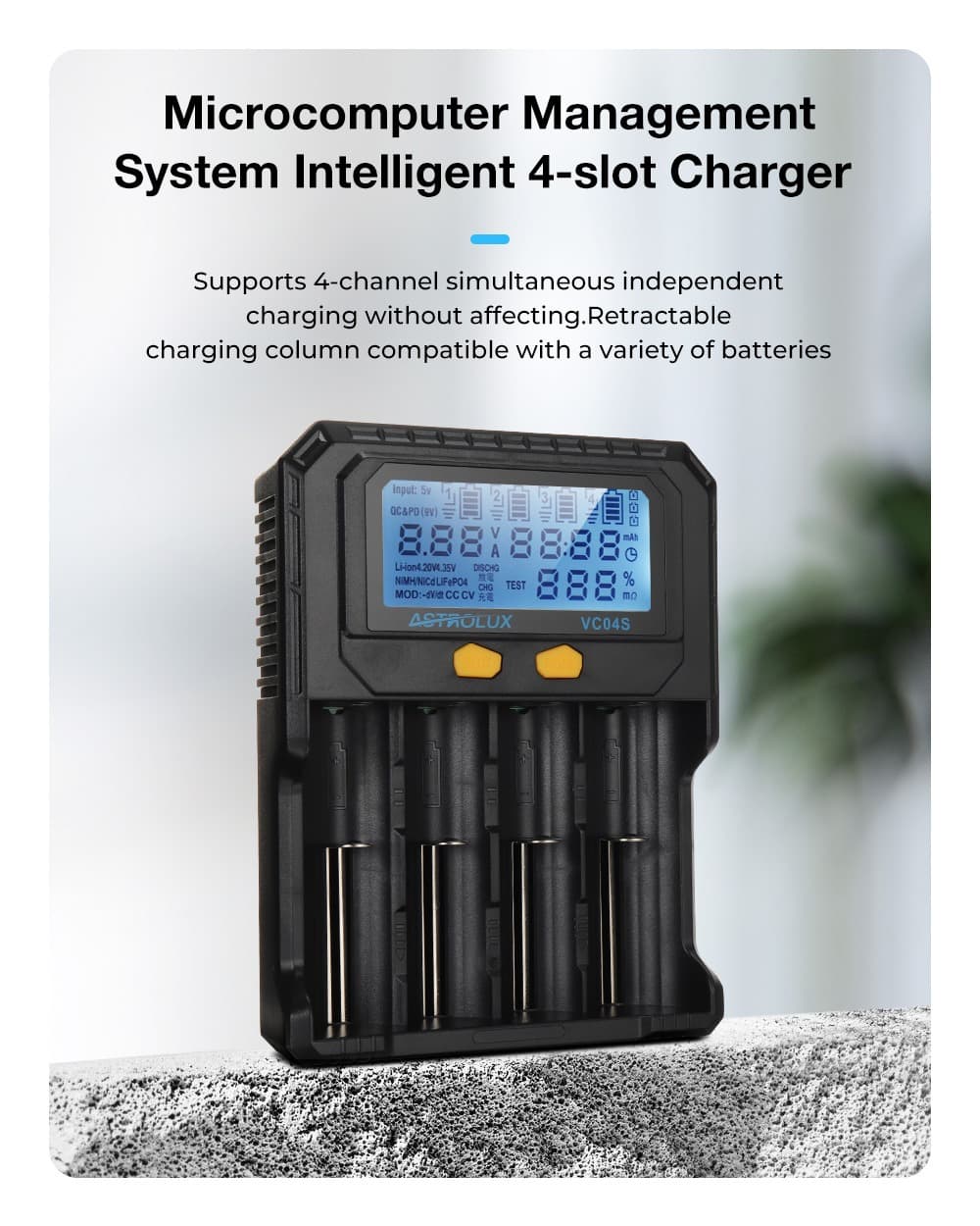 Astrolux VC04S : Τετραθέσιος πολυφορτιστής μπαταριών συμβατός με πλήθος μπαταριών στα 16.6€!
