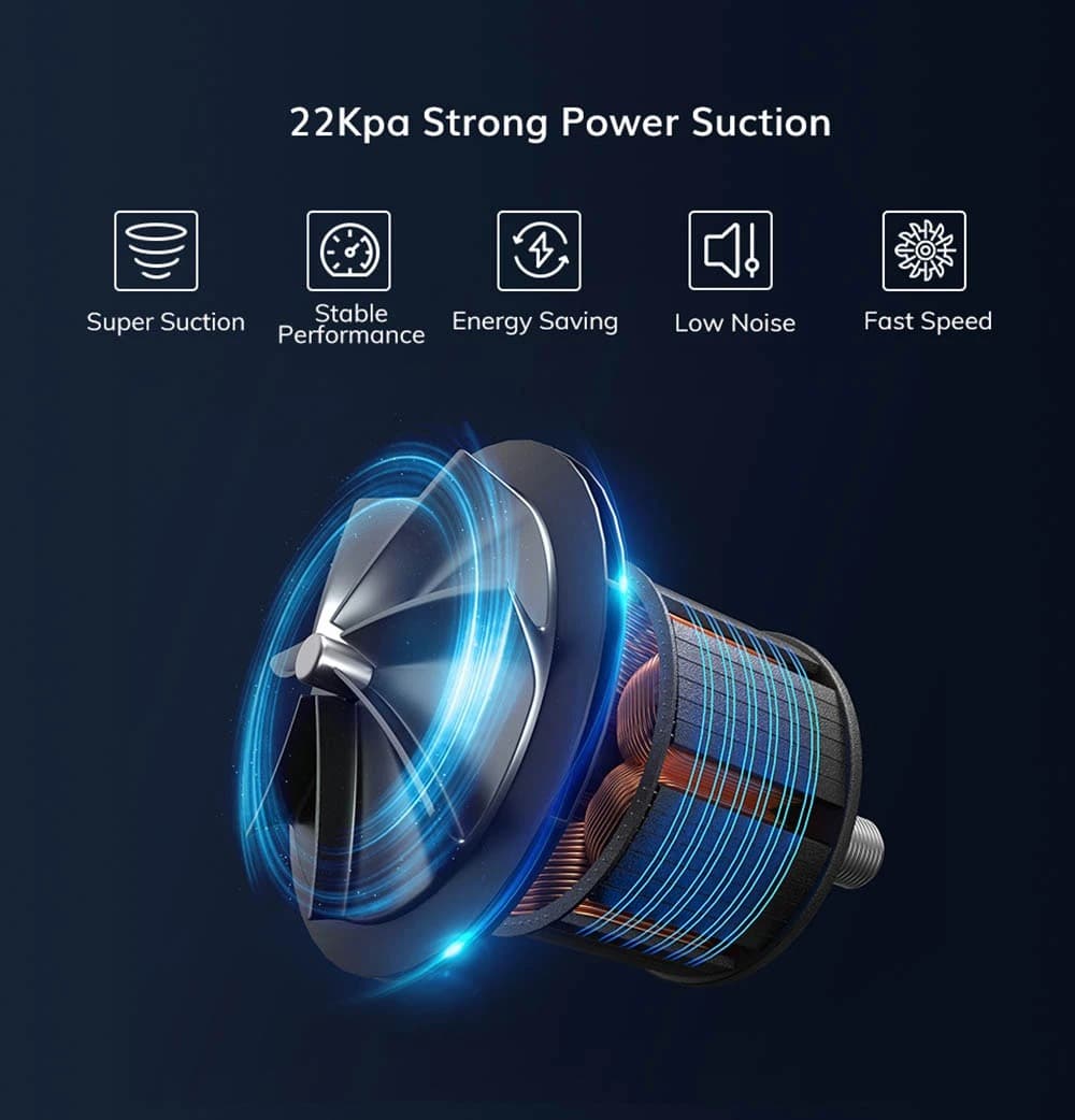 Διαθέτει ισχυρό μοτέρ με δύναμη απορρόφησης 22KPA  και τρία εξαρτήματα βούρτσας για να καθαρίζει αποτελεσματικά σκόνη, βρωμιά και τρίχες κατοικίδιων ζώων από δάπεδα, χαλιά, και γενικά όλες τις επίπεδες επιφάνειες, ακόμη και από το εσωτερικό του αυτοκινήτου σας. Με τη βοήθεια της μπαταρίας 2500mAh , η συσκευή μπορεί να λειτουργήσει έως και 45 λεπτά συνεχούς χρήσης, αρκετή ώρα για να καθαρίσετε ολόκληρο το σπίτι σας.