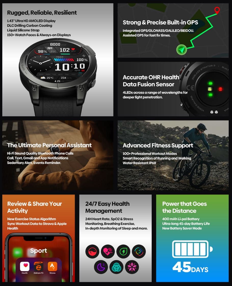 To Zeblaze Stratos 3, μπορεί να στρογγυλοκαθίσει δικαιωματικά στο θρόνο του “καλύτερου ρολογιού του 50αρικου” αφού είναι πληρέστατο σε κάθε κατηγορία, και θα δικαιολογήσει με άνεση τα 6-7 ευρουλάκια που κοστίζει πάνω απο το όνομα της κατηγορίας, αφού στο Banggood