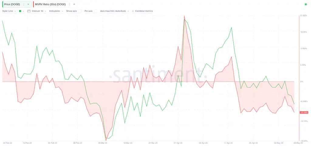 Τα δεδομένα MVRV (Market Value to Realized Value) δείχνουν ότι οι περισσότεροι επενδυτές που αγόρασαν το DOGE τις τελευταίες 30 ημέρες βρίσκονται επί του παρόντος κατά 11% κάτω. Το MVRV (Market Value to Realized Value) είναι μια αναλογία που συγκρίνει την τρέχουσα κεφαλαιοποίηση της αγοράς ενός κρυπτονομίσματος με την πραγματοποιηθείσα κεφαλαιοποίηση.