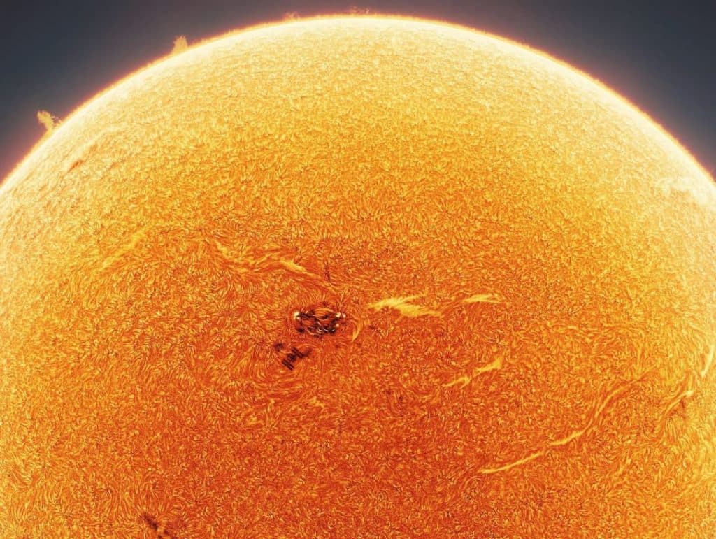 Η τρίτη φορά όμως ήταν η τυχερή. Κάτω από τον καυτό Ήλιο, σε θερμοκρασία 38 βαθμών, ο φωτογράφος χρησιμοποίησε δύο τηλεσκόπια για να τραβήξει τον ISS στο ορατό φάσμα και ένα τρίτο τηλεσκόπιο για να καταγράφει τις εκπομπές υδρογόνου από τη χρωμόσφαιρα, ένα λεπτό στρώμα πλάσματος ανάμεσα στην ορατή επιφάνεια του άστρου (τη φωτόσφαιρα), και το εξωτερικό στρώμα της ατμόσφαιρας (το στέμμα).
