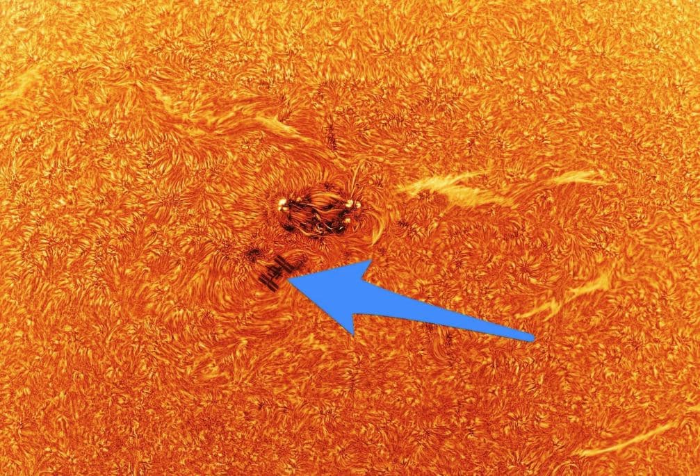 Ο ISS γυρίζει γύρω από τον πλανήτη 16 φορές την ημέρα και είναι συχνά ορατός για όποιον ξέρει να κοιτάξει και πότε. Πού και πού, το πολυεθνικό τροχιακό συγκρότημα περνά ακριβώς μπροστά από τον Ήλιο, ένα πέρασμα που διαρκεί λιγότερο από μισό δευτερόλεπτο.