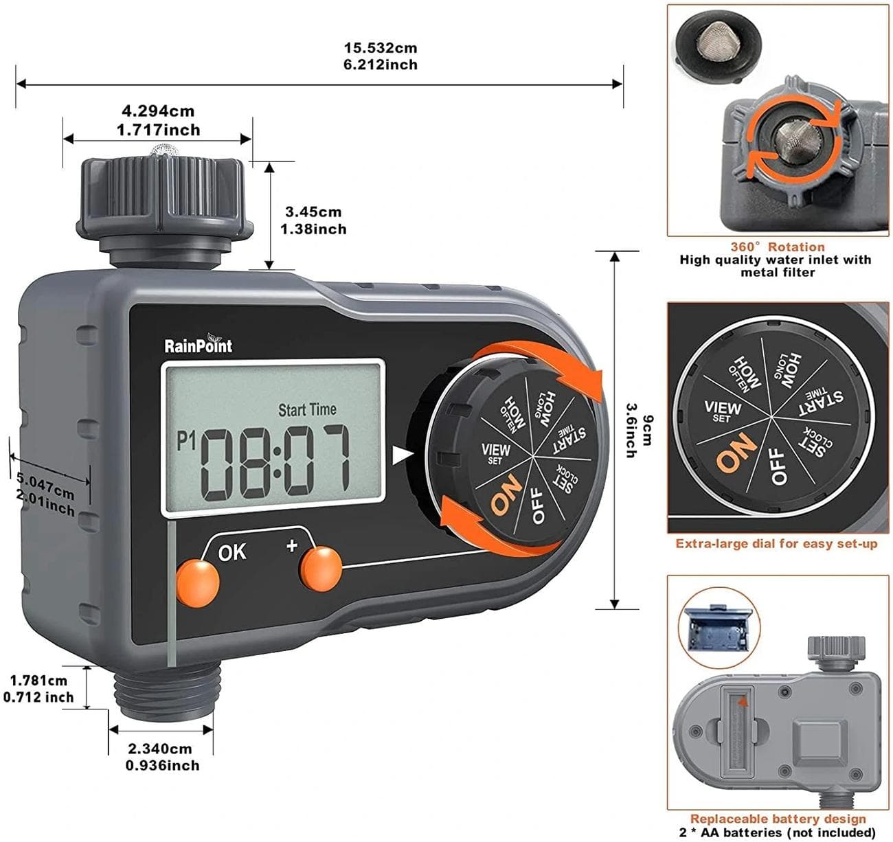 Πρόσθεσε μια ειδοποίηση για RAINPOINT Sprinkler Timer Water Hose Timer with 3 Programs Digital Irrigation Timer System with… – €19,10