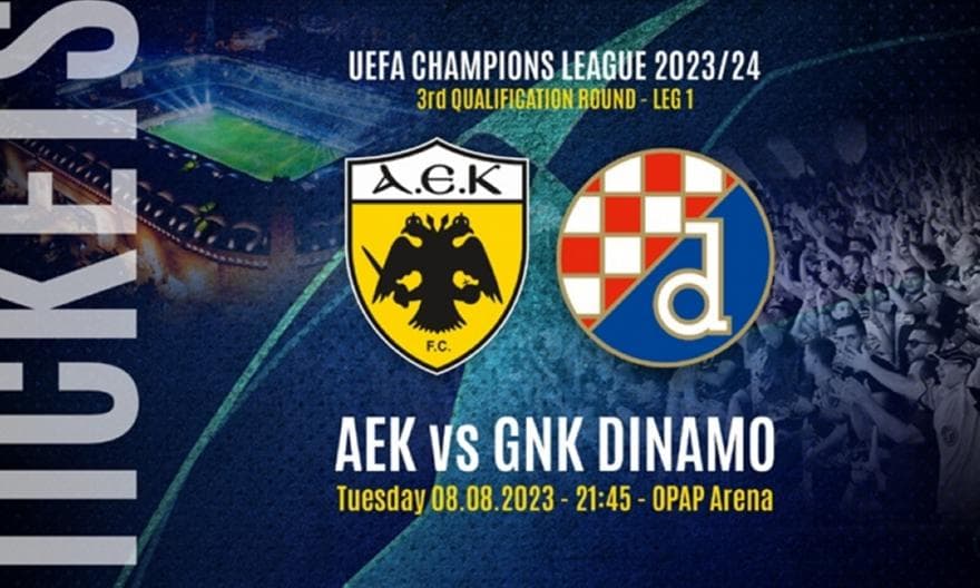 Το παιχνίδι μεταξύ της ΑΕΚ και της Ντινάμο Ζάγκρεμπ θα διεξαχθεί την Τρίτη (08/08) στις 21:45 στην OPAP Arena και θα μεταδοθεί απευθείας από το