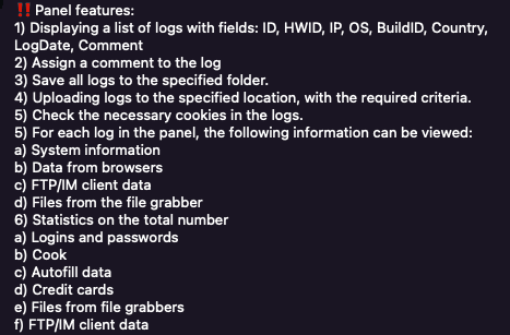 Τα Infostealers είναι μια μορφή trojan απομακρυσμένης πρόσβασης (RAT) που μολύνει έναν υπολογιστή-θύμα, διεγείρει όλα τα διαπιστευτήρια που είναι αποθηκευμένα στο πρόγραμμα περιήγησης, καθώς και τα cookies περιόδου λειτουργίας, ενώ επίσης κλέβει άλλα ευαίσθητα δεδομένα, όπως πληροφορίες πιστωτικών καρτών, δεδομένα πορτοφολιού κρυπτονομισμάτων και άλλες πληροφορίες από τον οικοδεσπότη.