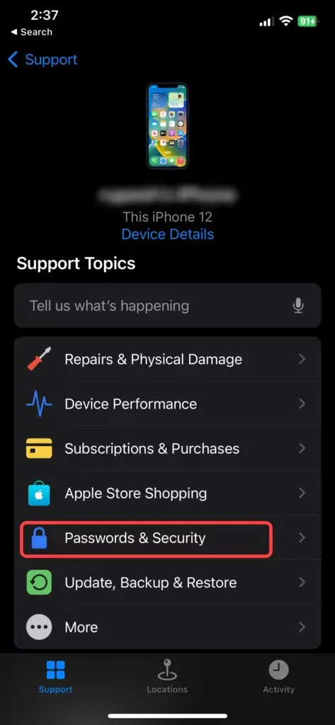 - Αρχικά ανοίξτε την εφαρμογή Apple Support.
